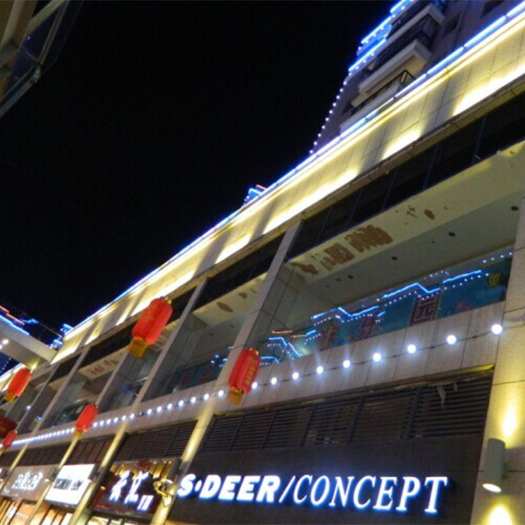• 采用led冷光源發光,內置微電腦芯片,可任意編程控制,多個同步變化,單色變化也可以實現同步七彩漸變,跳變,掃描,流水燈全彩變化效果及多個LED點光源組成點陣屏??勺兓龈鞣N圖畫,文字和動畫效果,是線形光源及泛光照明的一個補充,外形美觀大方可滿足樓體等裝飾的點線面的設計要求