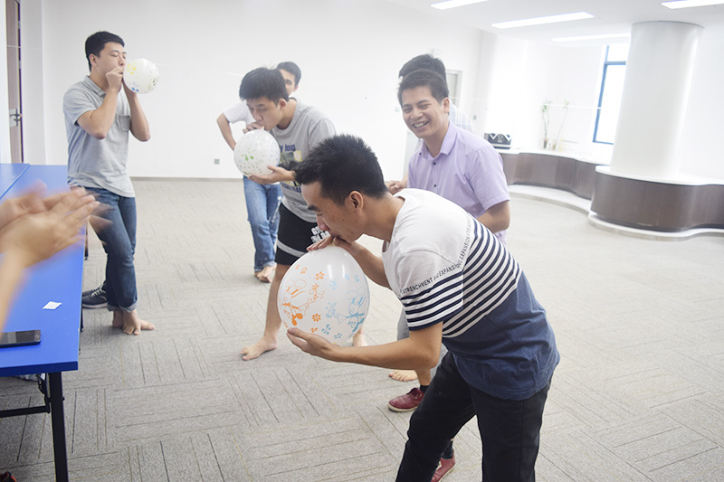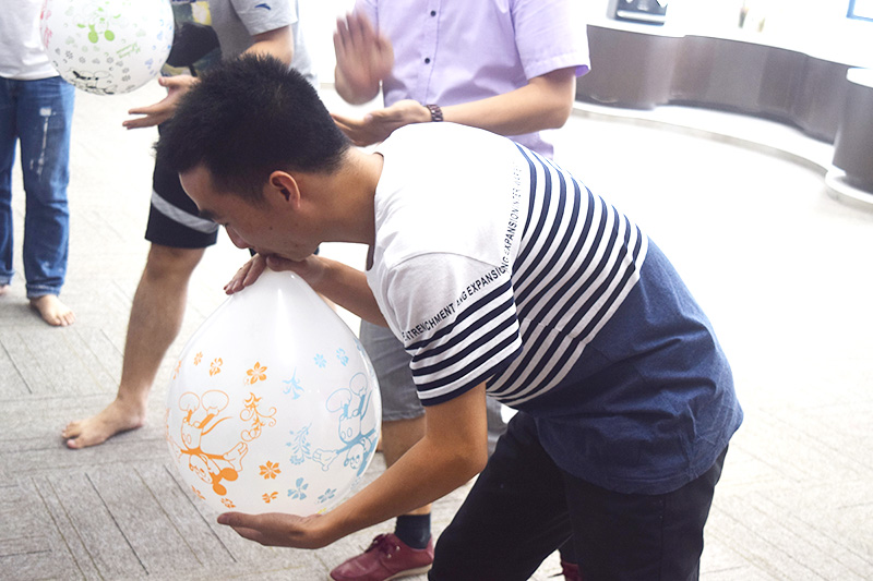 關(guān),氣球爆破。看誰氣足,氣球破的快,很明顯紅隊(duì)是領(lǐng)先的一組。但藍(lán)隊(duì)后來居上,領(lǐng)先獲得關(guān)的勝利。