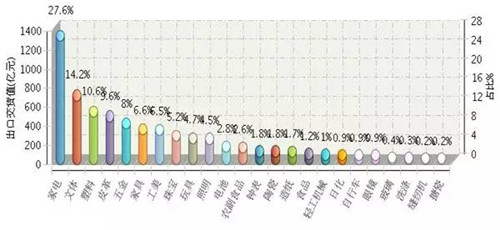 ? 2017年1~6月廣東輕工全行業累計出口交貨值重點行業占比情況