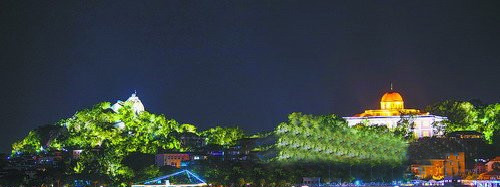? 日光巖與八卦樓夜景,柔和的燈光給人恬淡舒適之感。