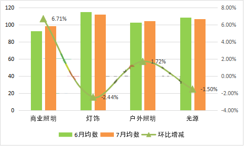 商業(yè)照明系列7月均數(shù)為98.75點(diǎn),較6月上漲6.71%;