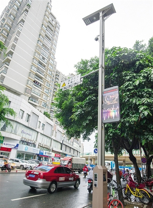 ? 那么,市民可從該智慧燈桿具體能享受到什么服務?據智慧燈桿生產廠家技術人員劉大彪現場演示介紹,例如免費公共WiFi,可覆蓋燈桿周邊50米范圍,市民只需在手機上搜索鏈接,即可免費使用,WiFi的信號強弱會根據周邊使用人數量的情況而定;智慧燈桿還可提供充電功能,可給電動汽車、電單車、手機充電,屆時可根據該燈桿上機座的功率來決定充電需要多久時間。