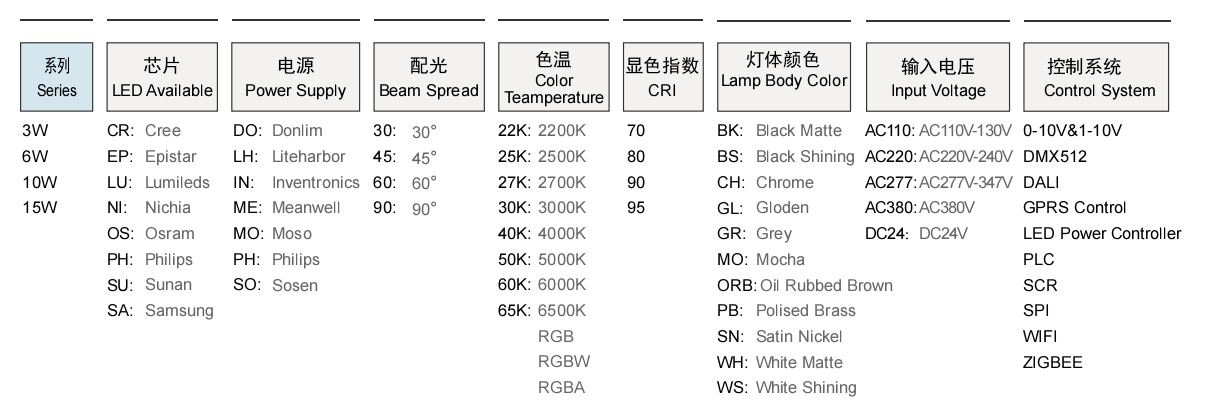 可選配光 30/40 30/40 30/40 30/40 30/40 30/40