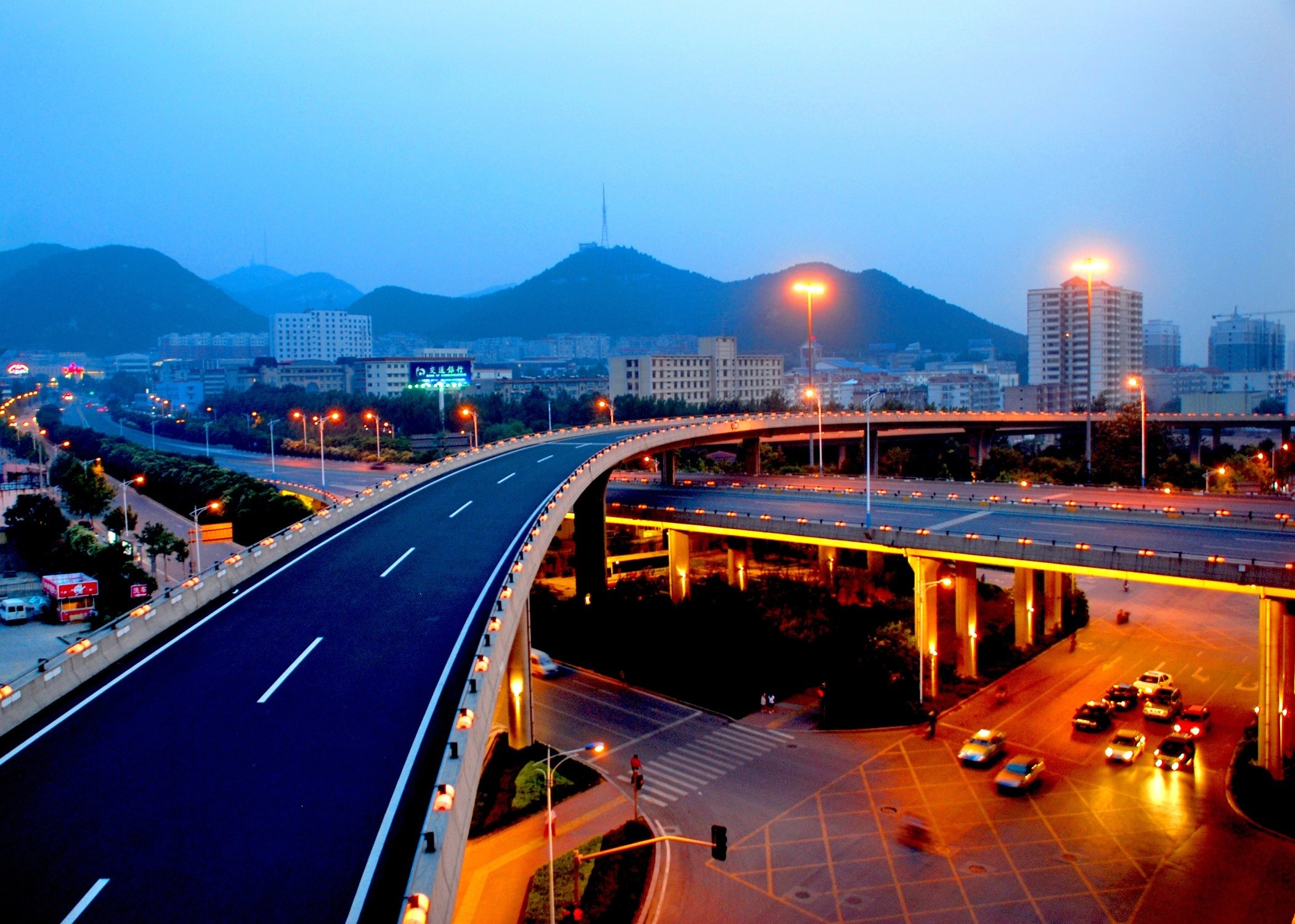 八一立交橋為三層互通式立體交叉,鋼筋混凝土構成,上層高架橋連接緯二路和英雄山路,供南北直行機動車通行,總長560米, 寬18米,為四車道,中有分隔帶。主橋和分橋17孔蝙蝠式雙立柱橋墩,引道為重力式擋土墻,用料石鑲面。中層由兩座跨越經(jīng)十路的三孔連續(xù)板橋組成,各長50米,寬14米,供南北直行非機動車和行人使用。東西向非機動車和行人繞行于匝道和外側。 下層地道供東西直行機動車通行,其低處距中層橋底4.5米,總長465米,寬18米,為四車道。地道利用此處地勢較高的特點,不設泵房,自流排水。地道兩側擋土墻,按5∶1放坡分為三個階梯,種植花草,美化環(huán)境,道路兩旁通透、開闊。四條匝道將高架橋與地道連接,供機動車轉彎時行駛,其外側有慢車道和人行道。在四條匝道之中,各設一座自動升降的高桿燈,主橋和分橋匝道橋下均設有壁燈和吊燈,在匝道外側的人行道上設58盞路燈,橋下埋設電訊、自來水、雨水、污水管線等。設施完備,功能齊全。該橋有較好的交通功能,保證了機動車、非機動車與行人完全分流。機動車從四個道口進入立交橋,車流量每小時平均6500輛。