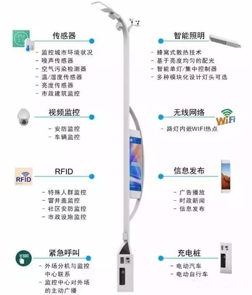 近期對(duì)路燈進(jìn)行的大量調(diào)研資料后發(fā)現(xiàn),如今,一些一體化燈桿已經(jīng)集成了LED?照明、智能安防設(shè)備、微基站、WiFi、攝像頭、氣象監(jiān)測(cè)器、LED交通誘導(dǎo)屏、充電樁等系統(tǒng),還能將垃圾箱、窖井蓋監(jiān)測(cè)以及更多的物聯(lián)網(wǎng)檢測(cè)設(shè)備集成進(jìn)來(lái),具備人流統(tǒng)計(jì)、環(huán)境監(jiān)測(cè)、快速充電、信息發(fā)布、應(yīng)急聯(lián)動(dòng)報(bào)警服務(wù)點(diǎn)、太陽(yáng)能充電等功能,甚至可以為共享單車停放、廣場(chǎng)舞擾民、施工工地噪音粉塵等難題提供有效解決方案。“路燈可被賦予的功效簡(jiǎn)直太多了。”該人士表示。