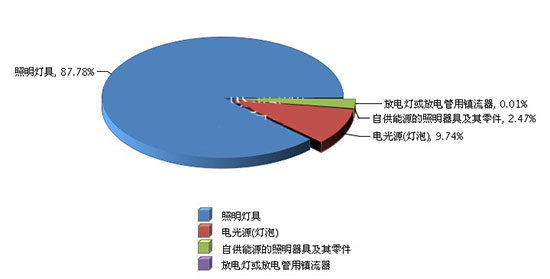 2017年1月~12月湖南照明行業累計出口額商品結構占比情況(燈港照明)
