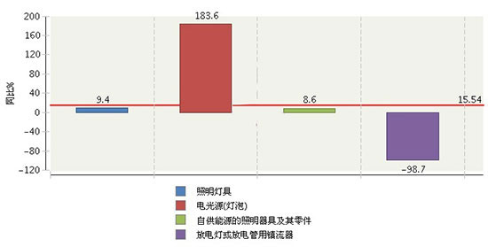 2017年1月~12月湖南照明行業累計出口額商品結構同比增長情況(燈港照明)