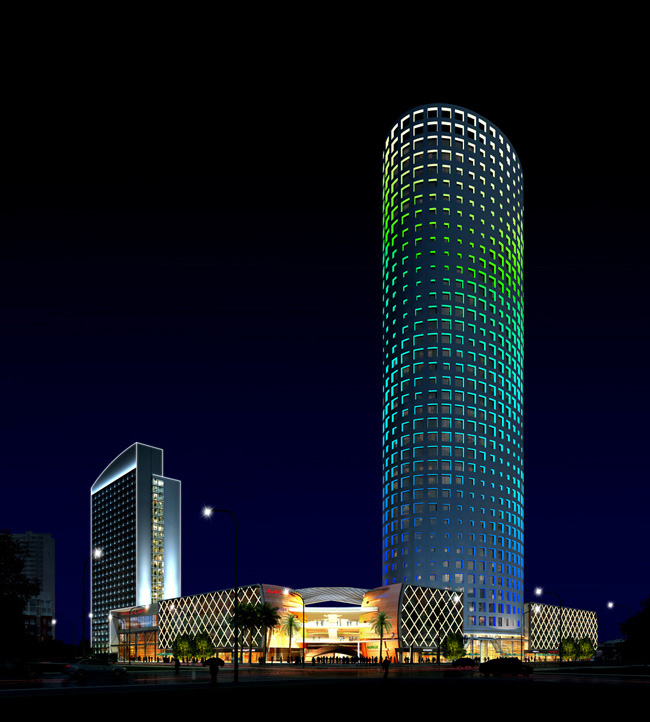 戶外照明工程中高層樓體亮化設計作為城市亮化的主力,突出建筑型體,注重樓體夜間亮化本身主題的表達以及周圍環境的烘托,進行合理的亮化設計規劃,突出本體建筑的整體性。